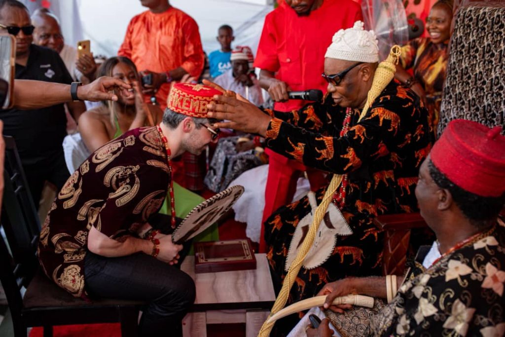 Mr Jeremy Kamm receiving his Chieftaincy title of Ikemba Okwaeze